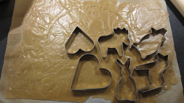 Ta bort bakplåtspappret och tryck ut kakor med hjälp av formar.